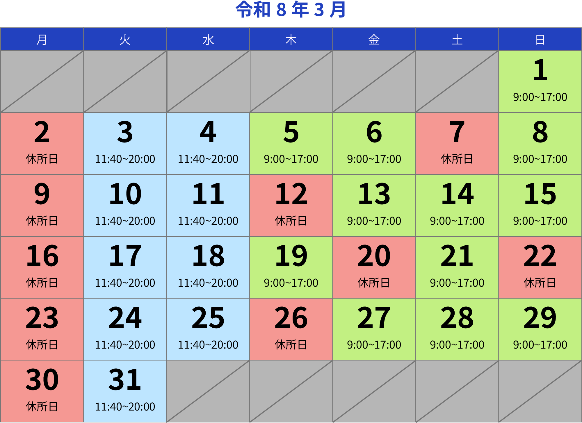 3月の休所日・開所日